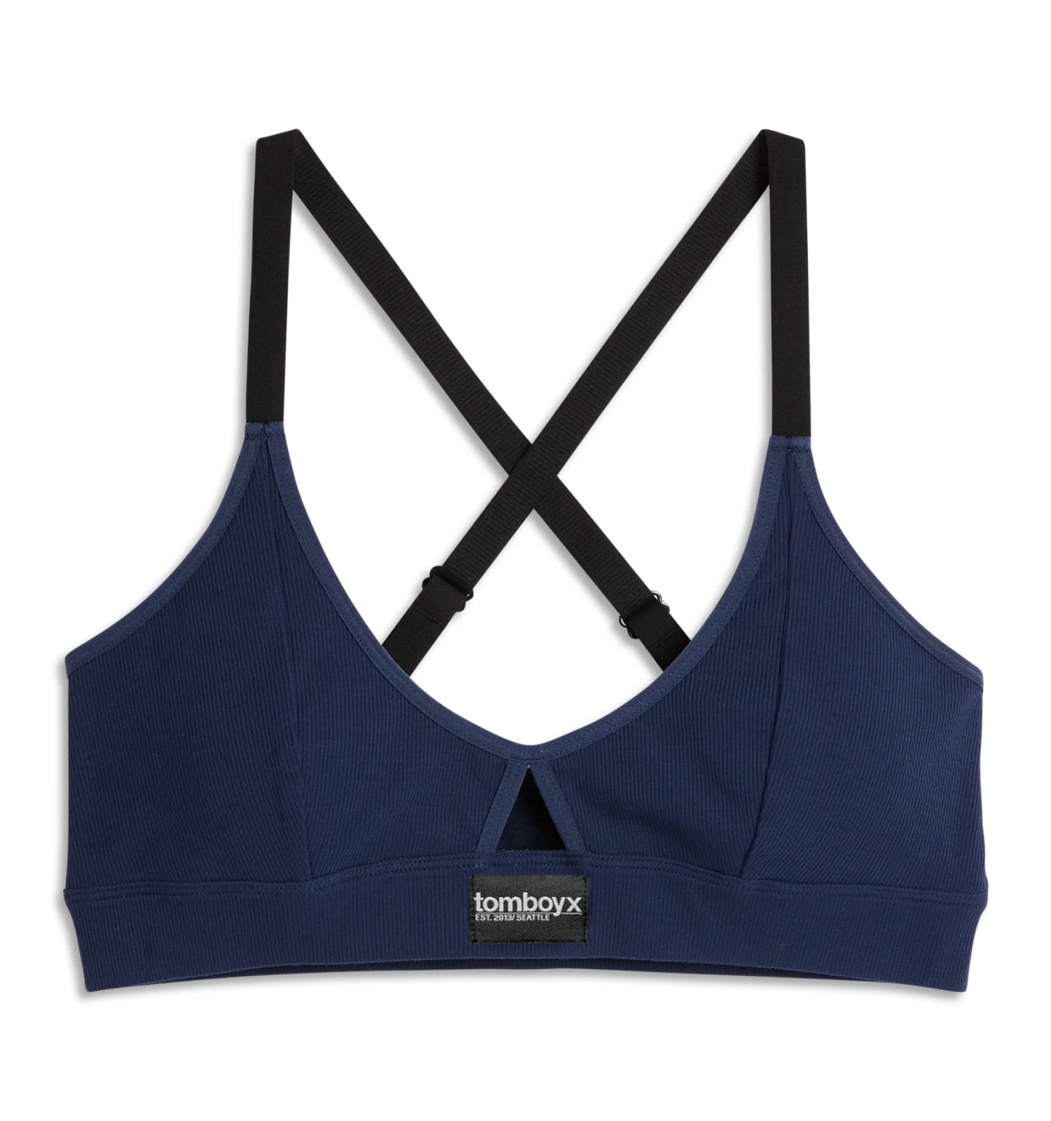 - Adjustable cross-back straps with brushed textured elastic