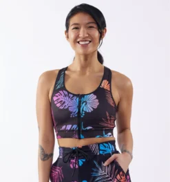 Swim Racerback Zip Compression Top – Palm Dreams(Swim Racerback Zip Compression Top Palm Dreams)