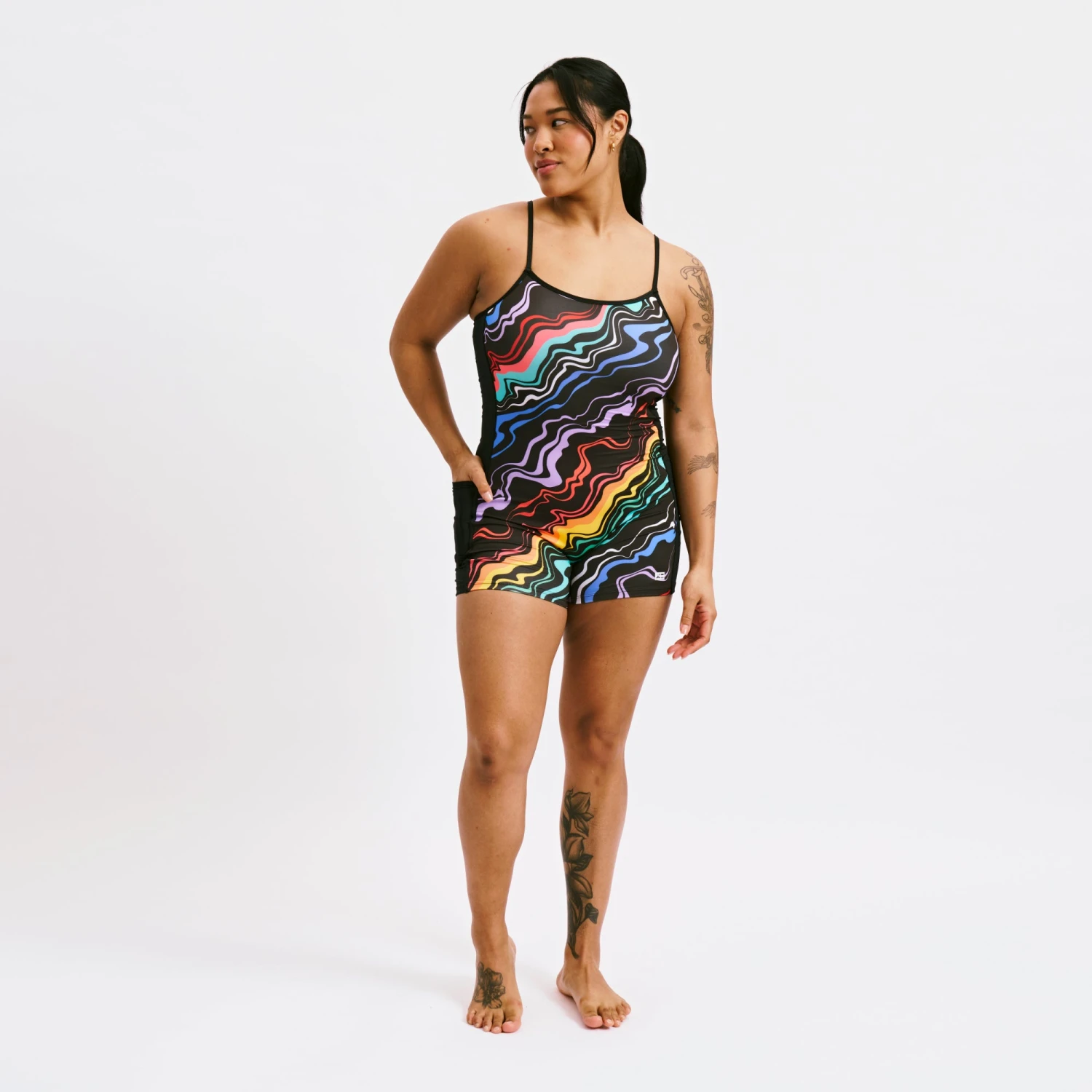 Everything you love about our original Unisuit with a shorter inseam and thin, adjustable straps for a tailored fit. The double-lined fabric gives you that close fit while still providing full coverage and light support. You’ll be ready to swim, hit the gym, or style with some sporty accessories for a casual hangout.